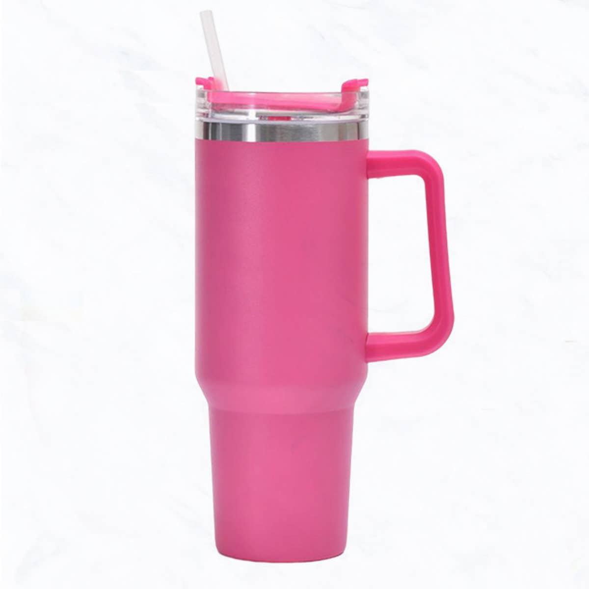 40 oz, Stainless Steel Tumbler with Handle, Straws Include: Fuchsia