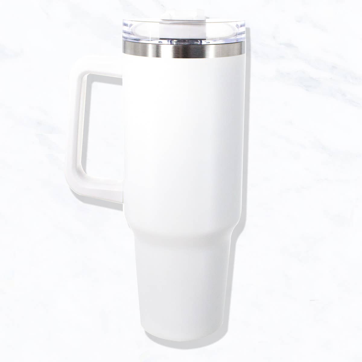 40 oz, Stainless Steel Tumbler with Handle, Straws Include: Latte