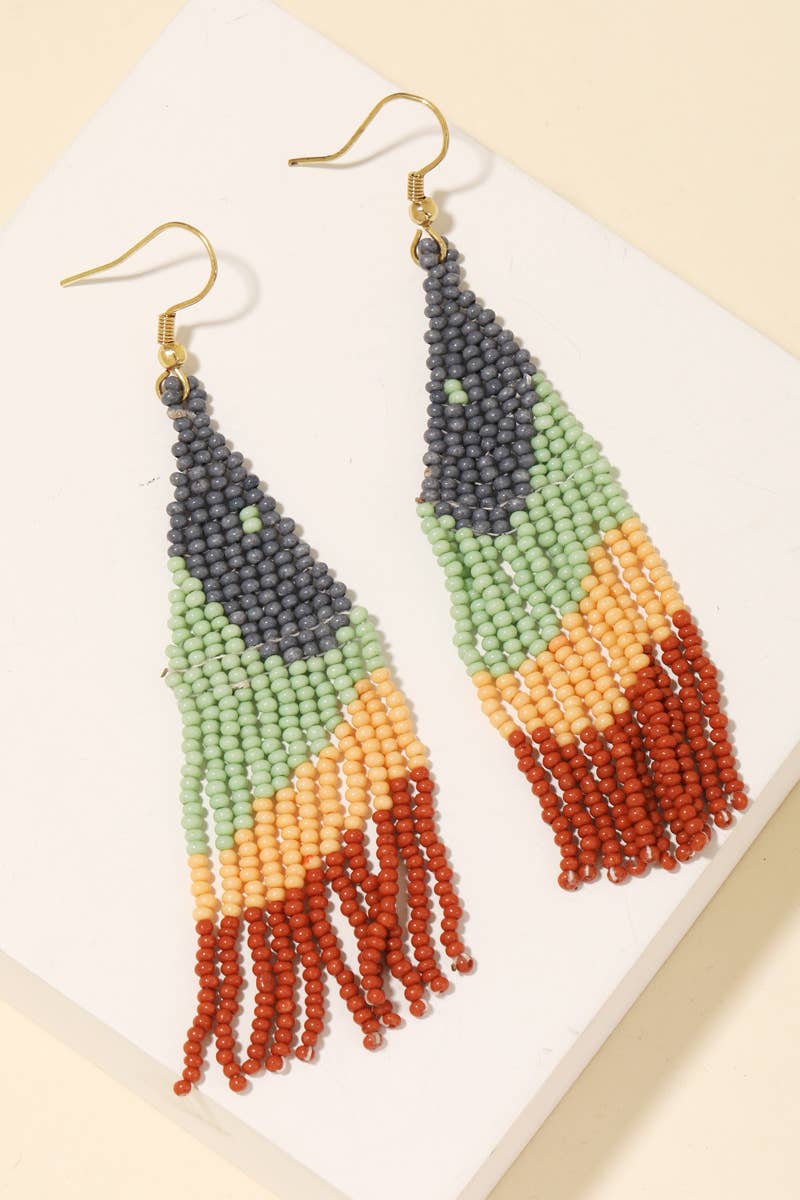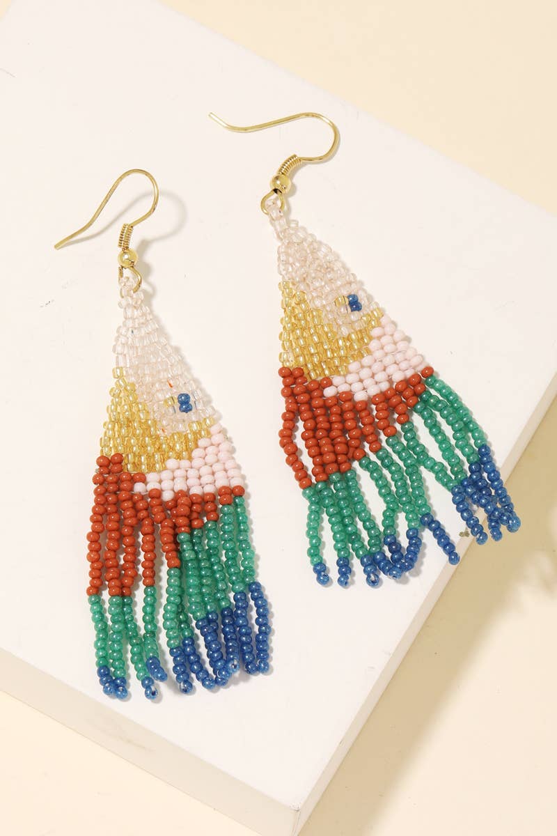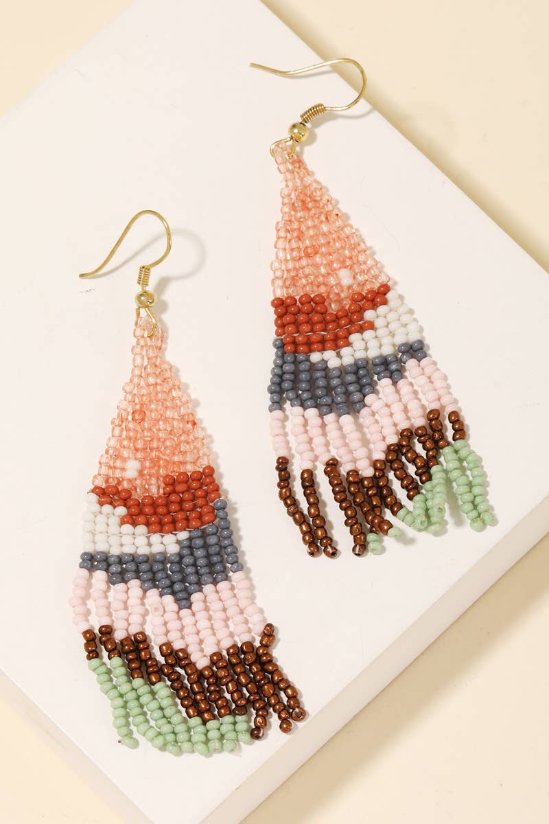 Abstract Triangle Fringe Beaded Drop Earrings: PK