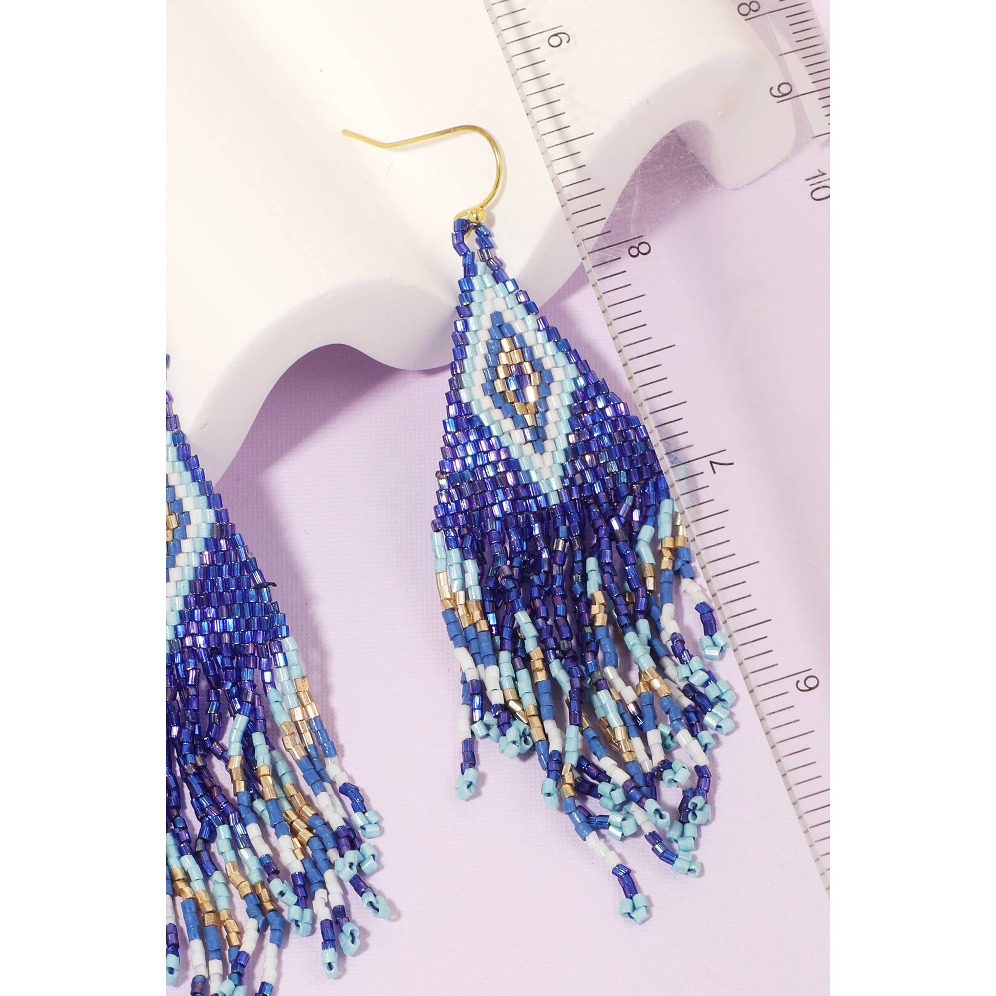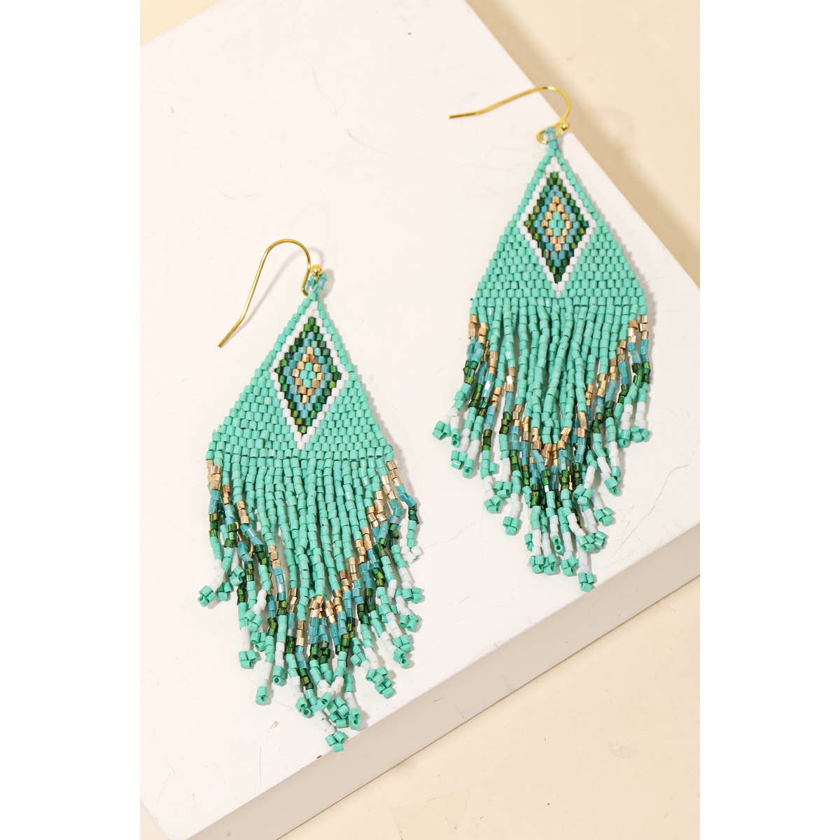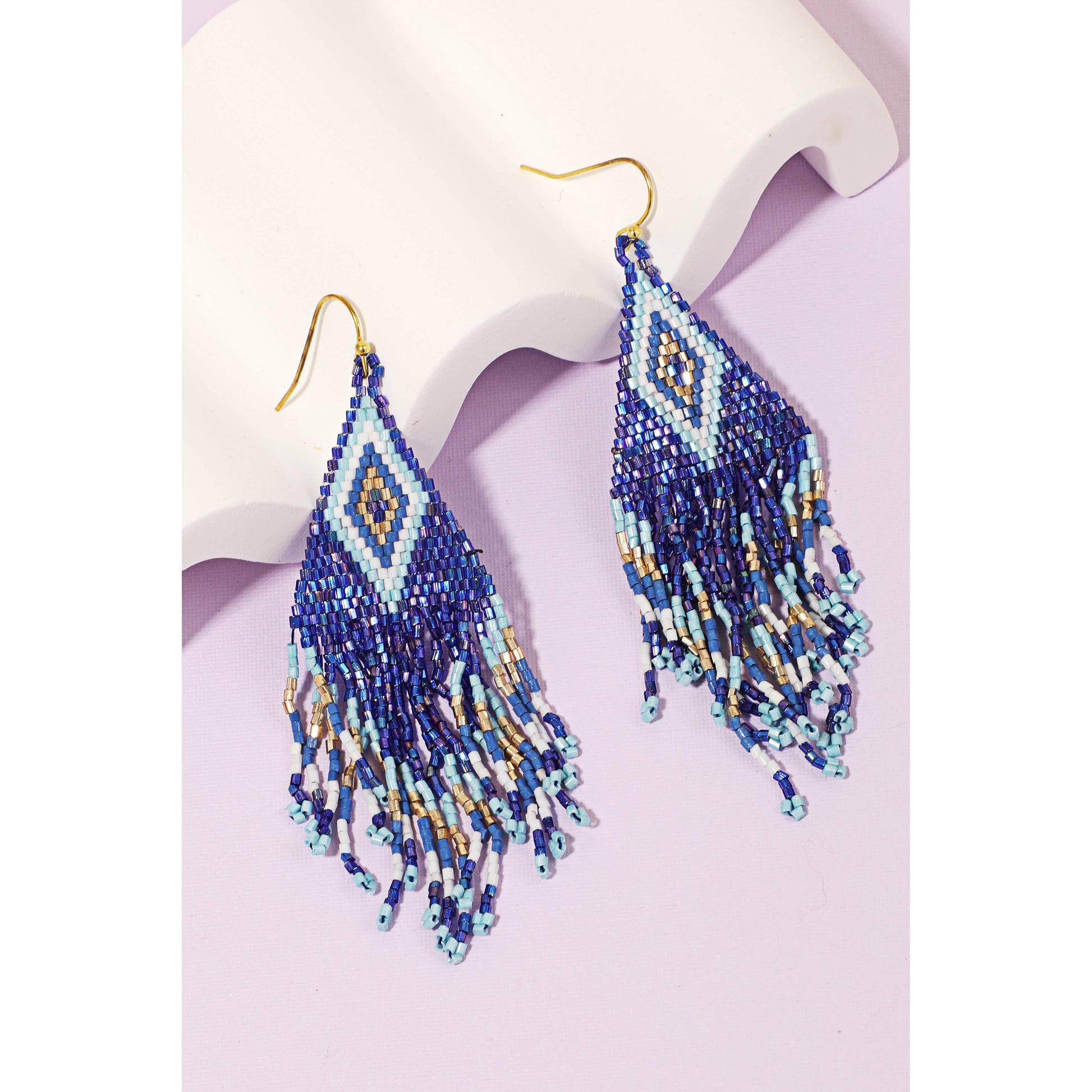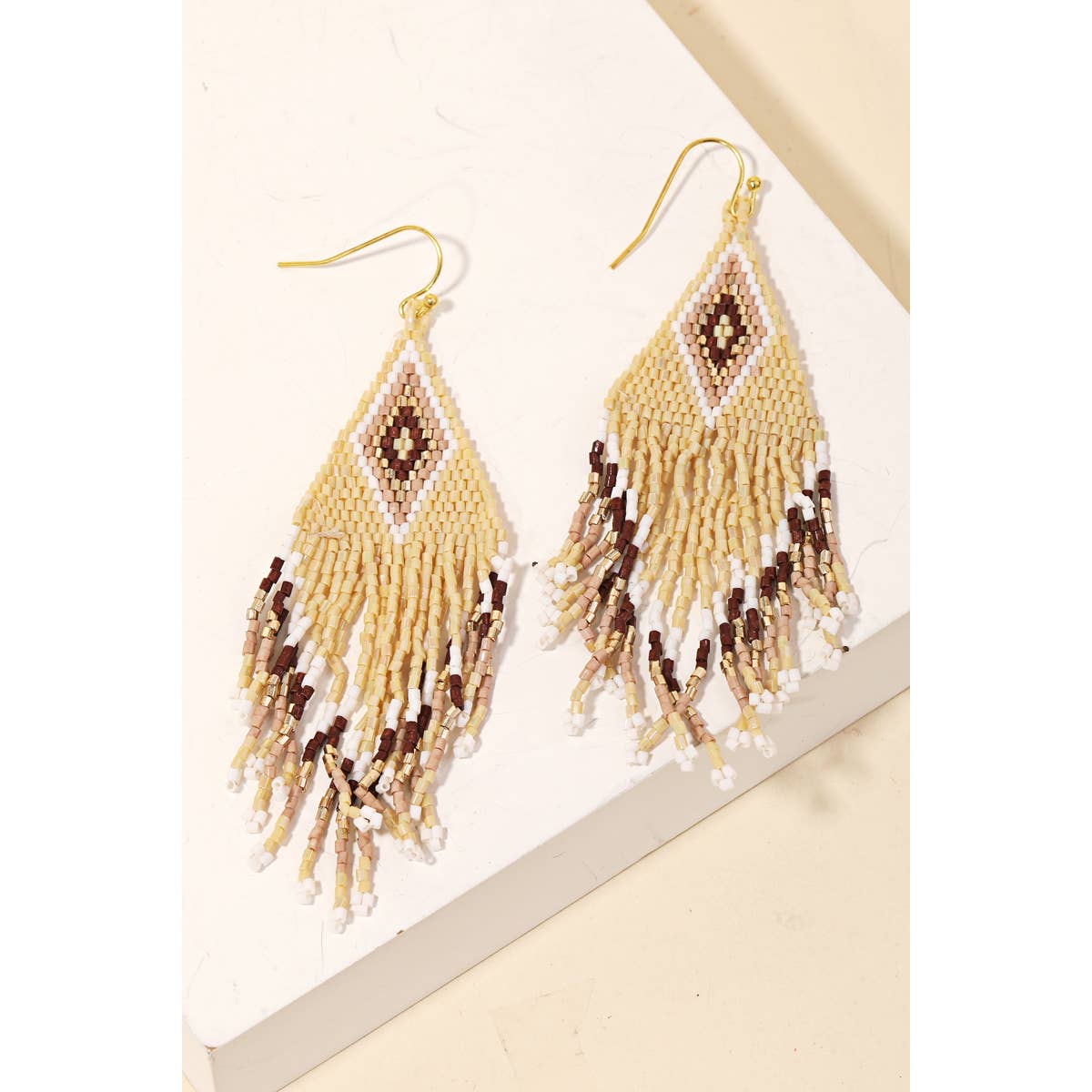 Sleek and modern, this pair of earrings highlights a special boho seed beaded fringe design. Elevate your style effortlessly with this versatile accessory, enhancing the appeal of any ensemble. Available in GBL, GIV and GMI. This item is sold in packs of 1.