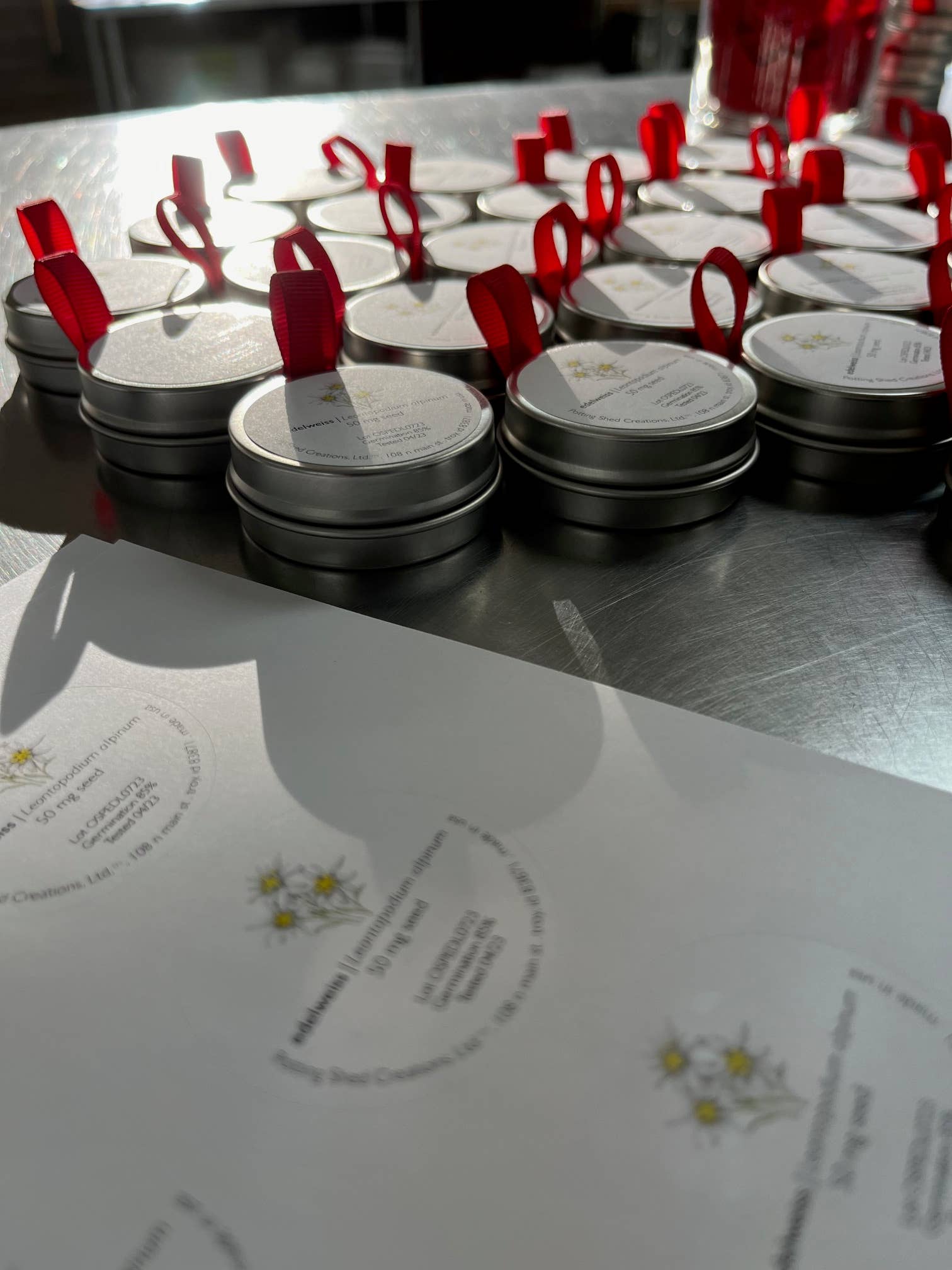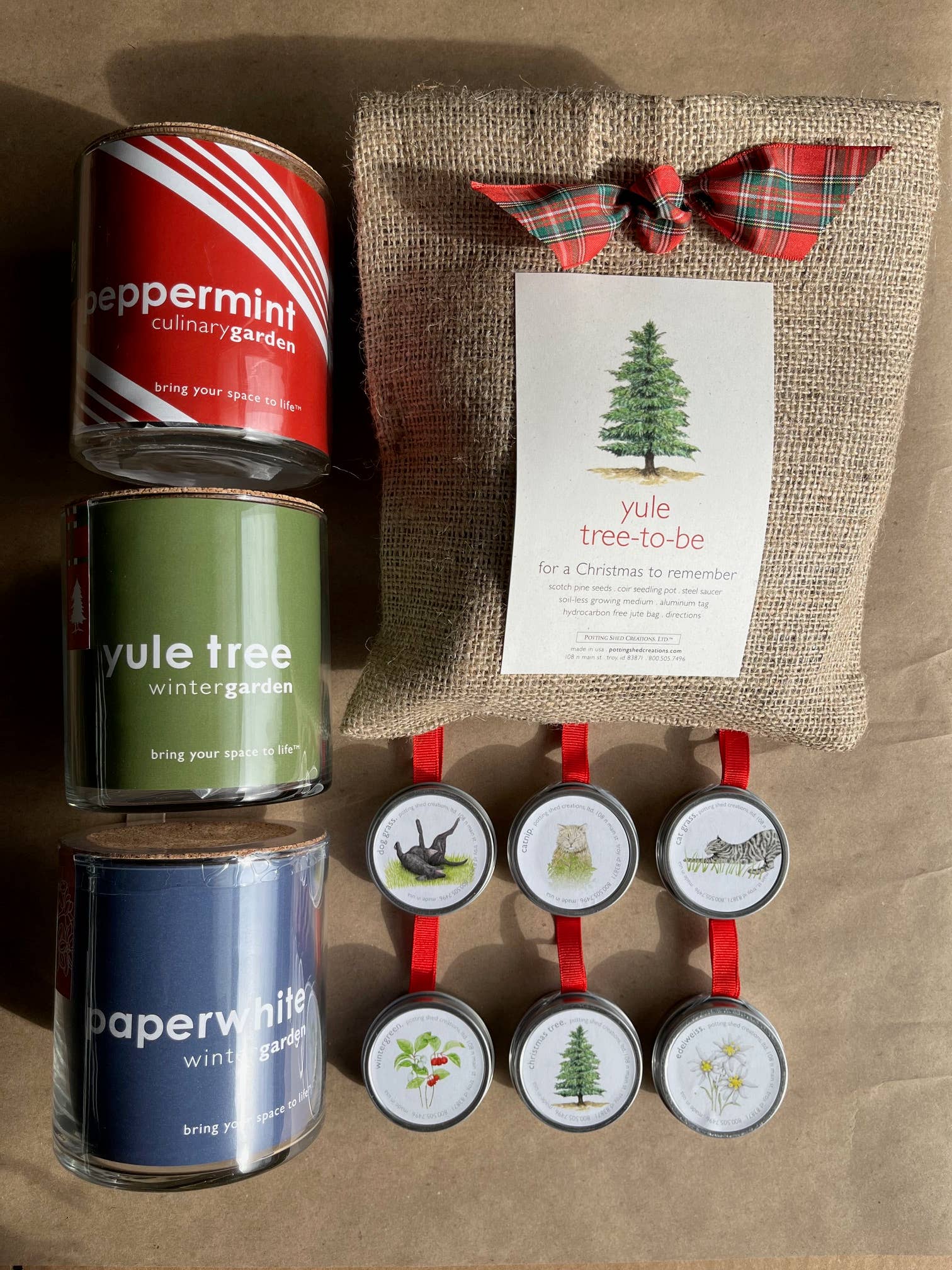 Includes: seed, reusable recycled US steel tin, ribbon hanger, directions. Tin 2" diam.
