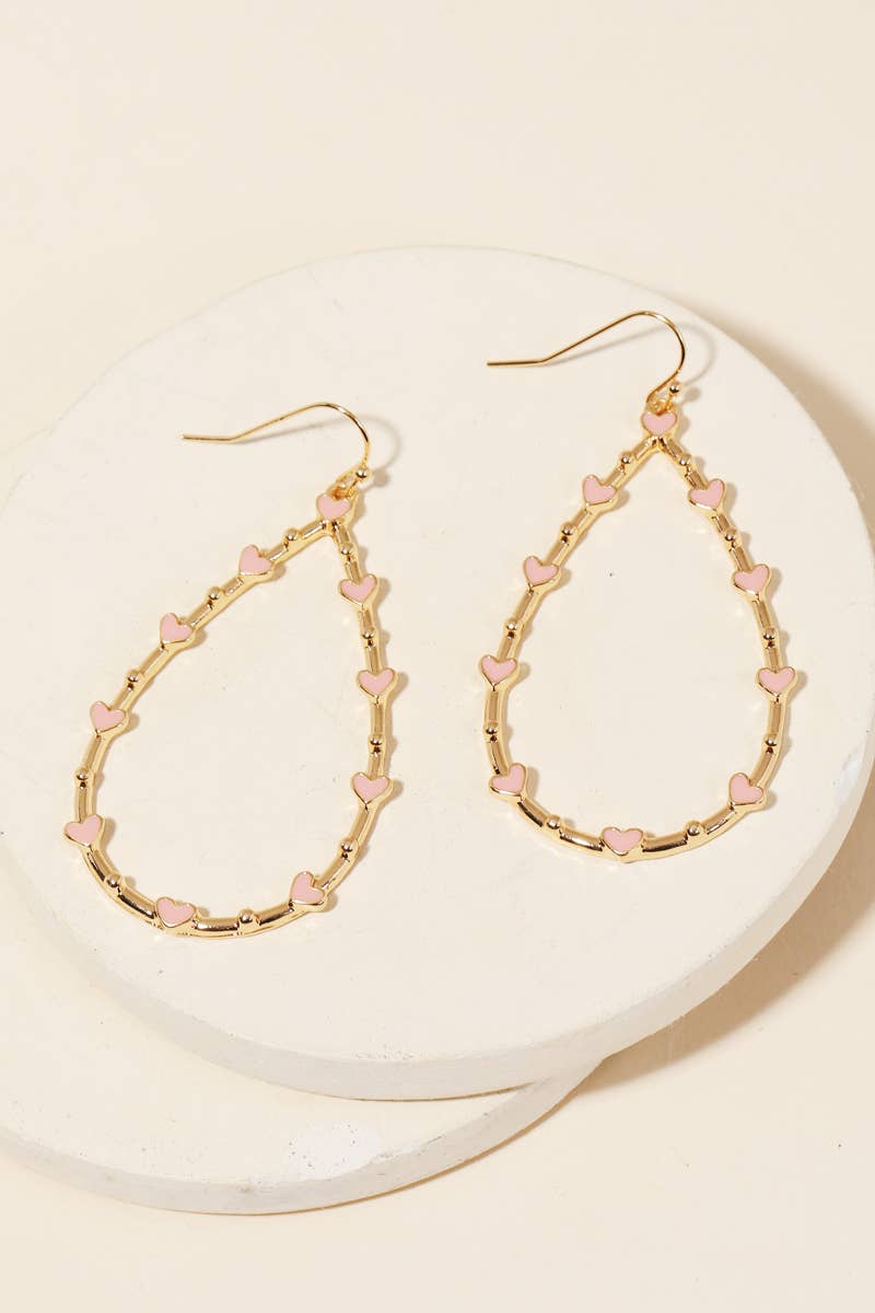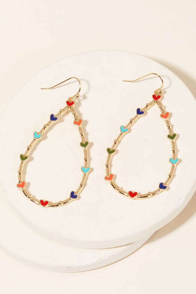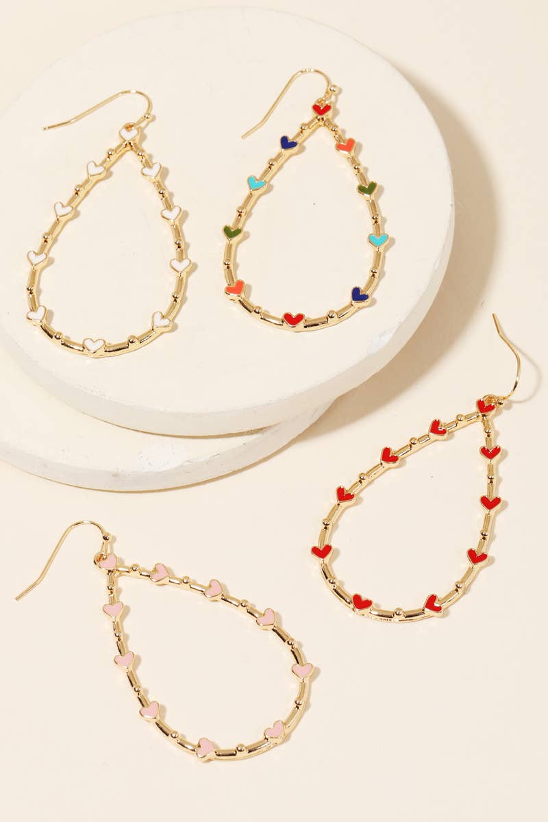 This new must have trending pair of earrings that features a unique heart teardrop cutout earrings design. Perfect for everyday wear. Available in MUL, PK and RED. This item is sold in packs of 1.