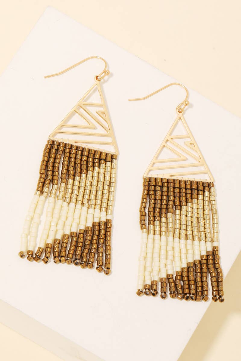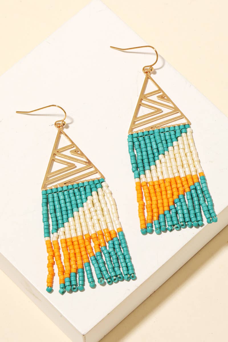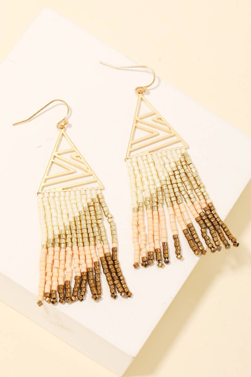 Intricate Triangle And Beaded Fringe Earrings: BPBR