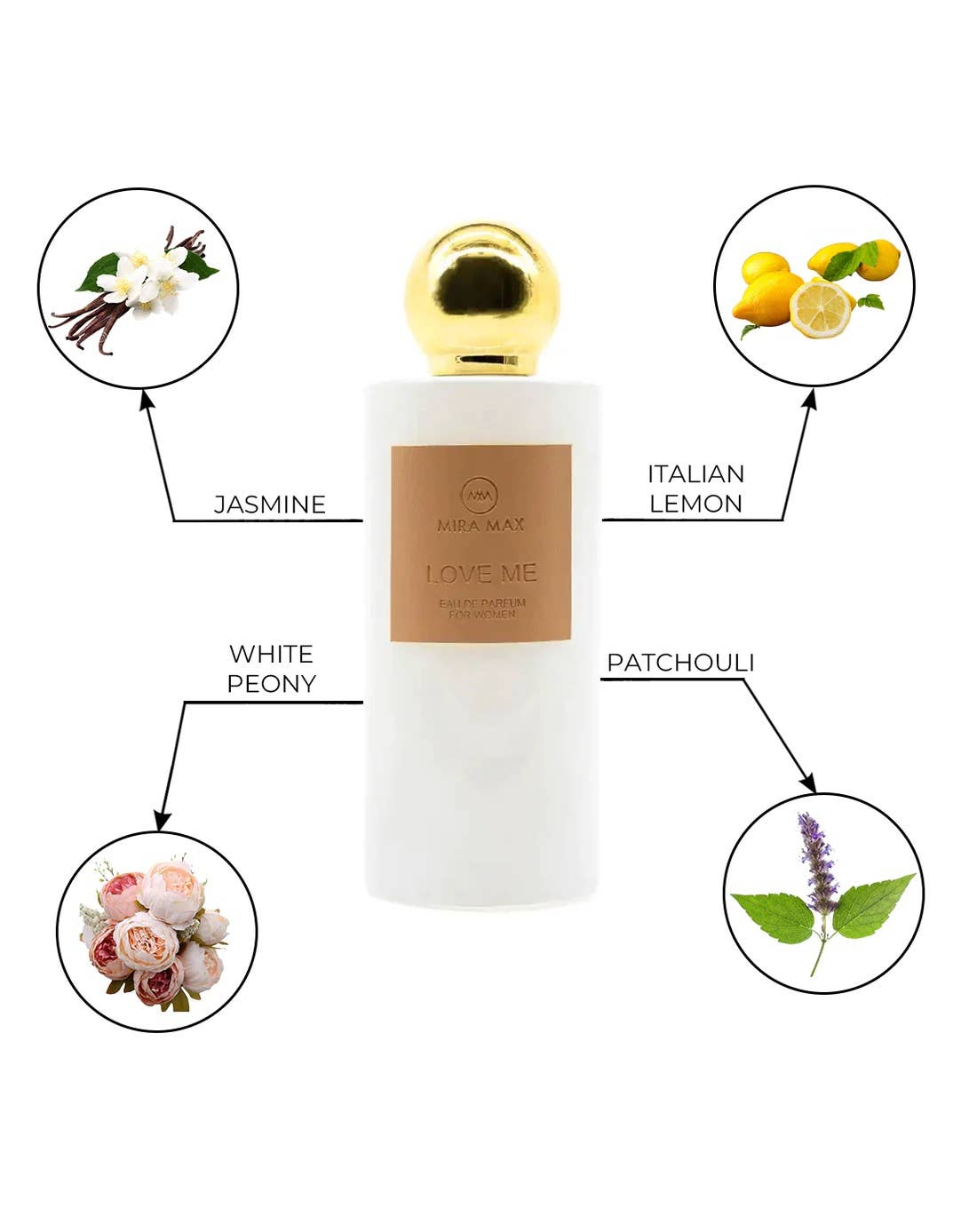 LOVE ME contains deep base notes of patchouli and blonde woods, revealing to you the mysteries of nature. The freshness of jasmine and the transparency of water lily and white peony in the heart notes seduce and intoxicate with their unparalleled floral fragrance. The owner of this perfume catches admiring glances at herself.