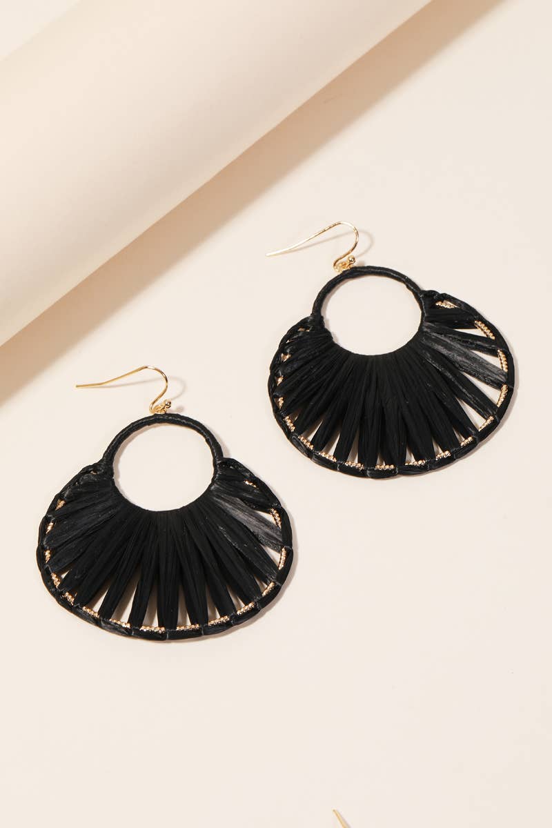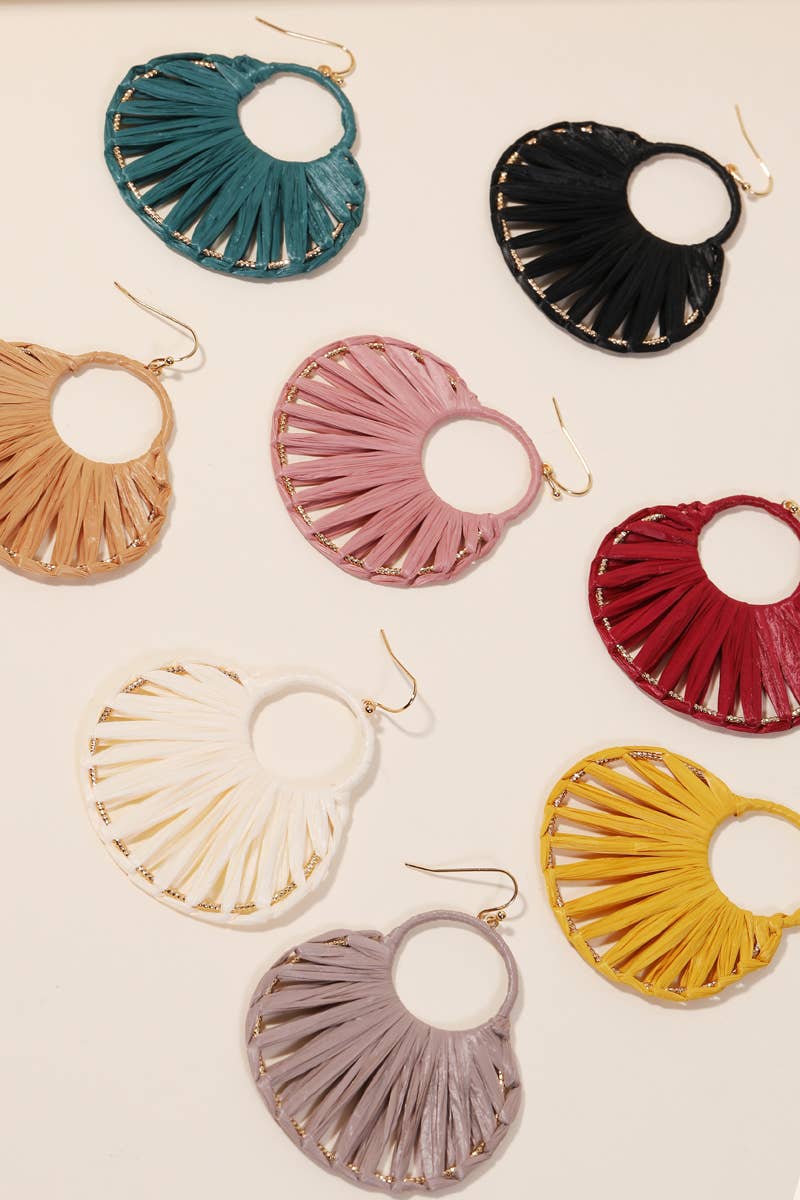 This is a popular giftable pair of drop earrings that features a gorgeous oval raffia thread drop earrings design. Fits well with almost any outfit! Available in BK, BUD, DBEG, IV, LBRS, LGY, MST and TEAL.
