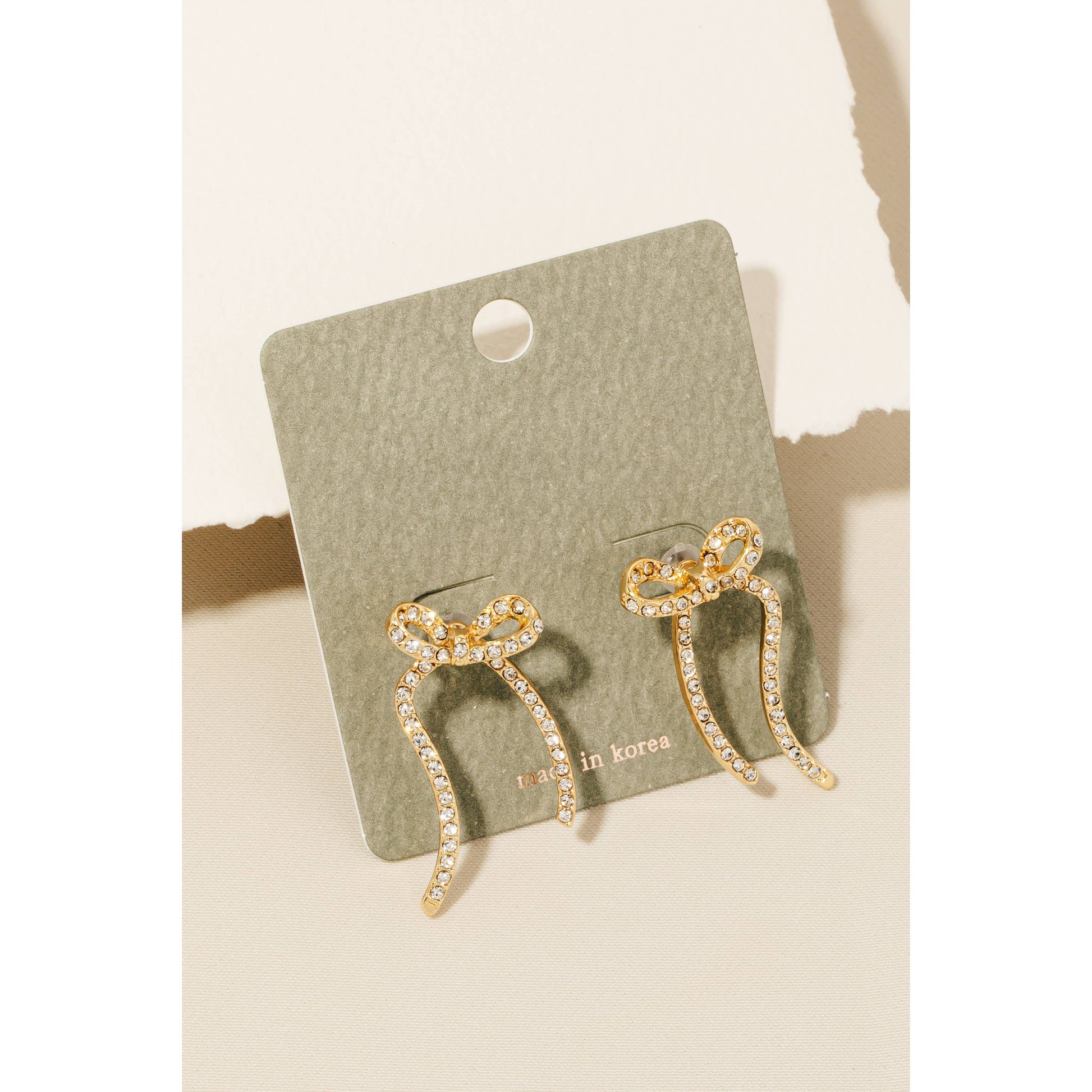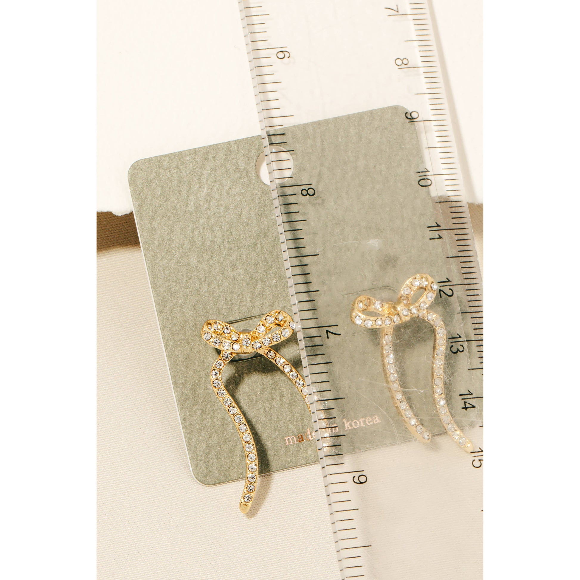 This piece is perfect for those who want to showcase their unique style, this pair of stud earrings adds a distinctive pave metallic ribbon bow design. Master the art of accessorizing with this versatile accessory, a key element for achieving a chic and polished look. Available in G and S. This item is sold in packs of 1.