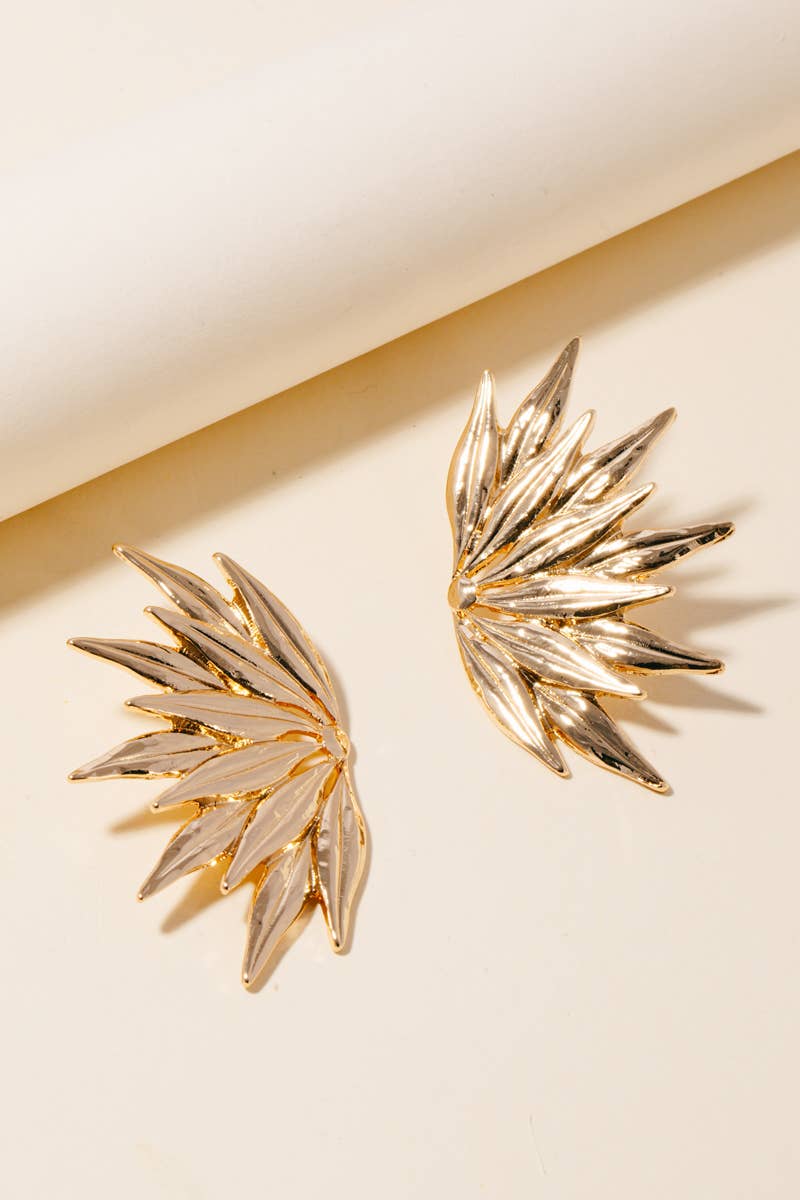 Solid Metallic Leaves Stud Earrings: GD