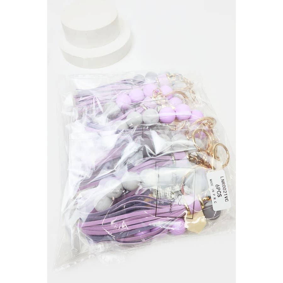 Wood and Beads Mixed Key Ring Bracelet: PURPLE MIX / ONE